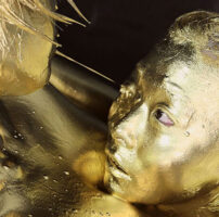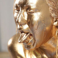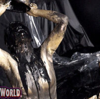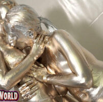 最初は白色のペイントを全身に塗っていき石造のように変わった体!そんな塗料まみれの体をみて興奮してきたみゆきちゃんは胸を弄り、アソコも弄りだす…