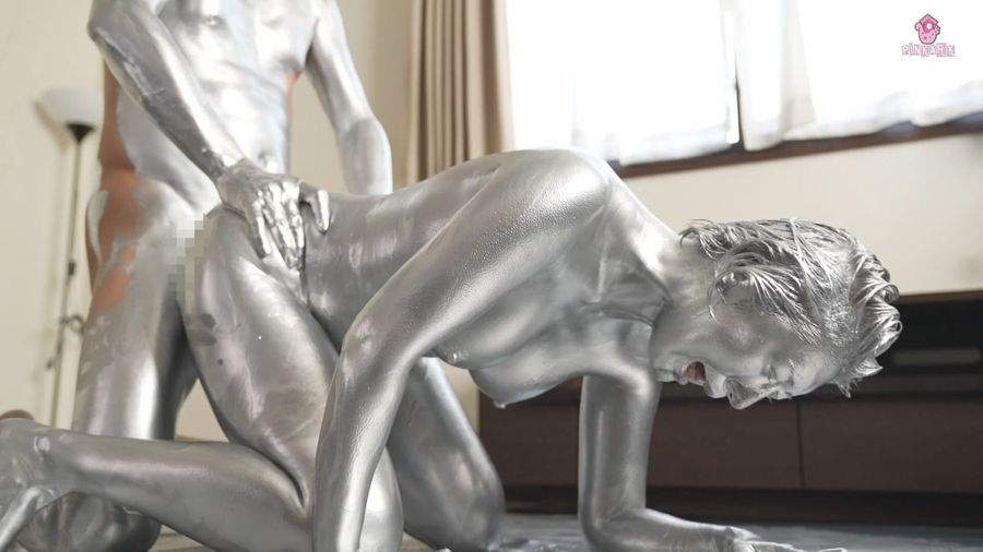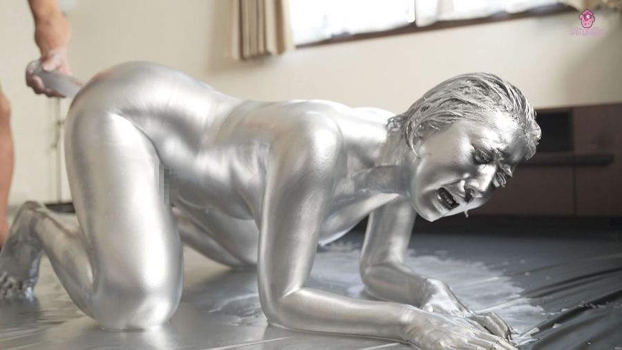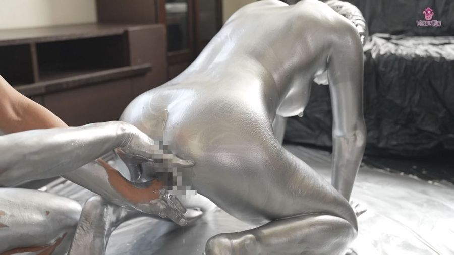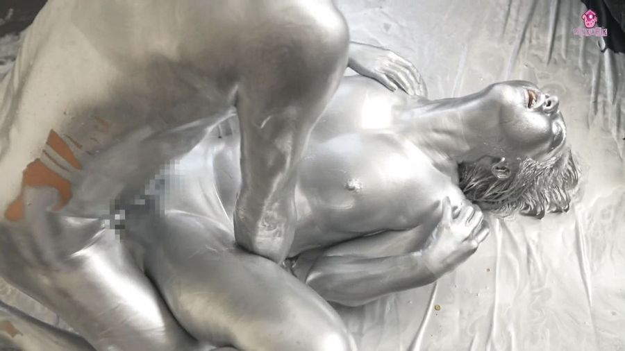 冒頭のメッシー自塗りからしっかり目に銀粉を入れてくれます。銀粉の目を開く瞬間がたまりません!銀色に染まったお尻に浣腸をされ、フェラからアナル挿入。