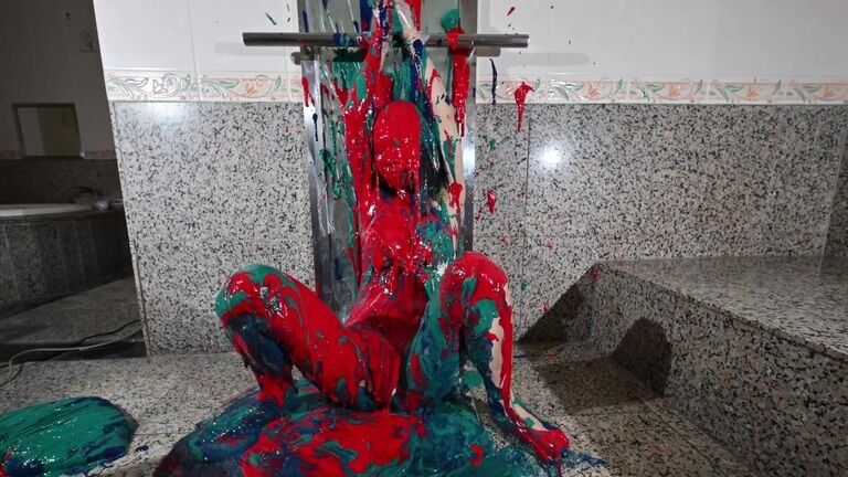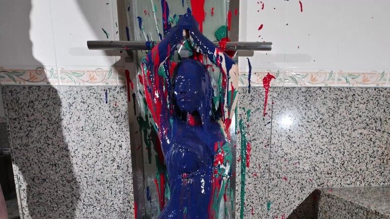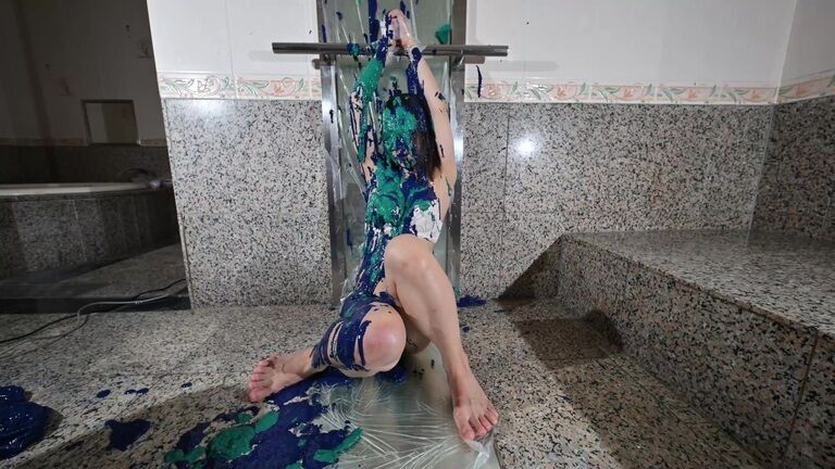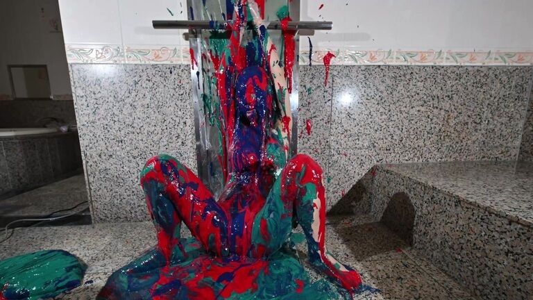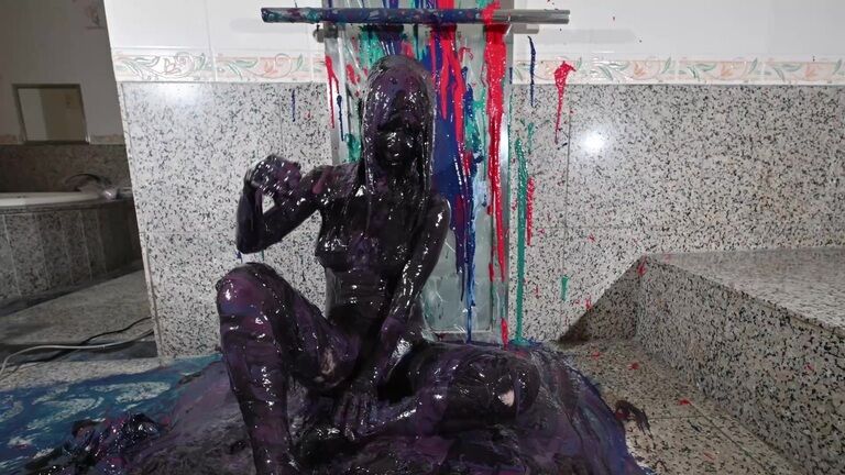 ペイントまみれのレズ!