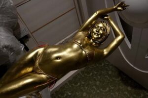 藤井朋が体の全身を黄金に染めてセックスする!金粉メッシー動画