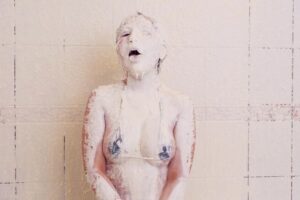 身体がパイだらけになり、先ほどまでのなぎさちゃんの姿形がわからなくなるところまできてしまいました…ここまで汚せば満足ですね!ここまでで約20リットルのクリームを使っているので凄いことになっていますね!