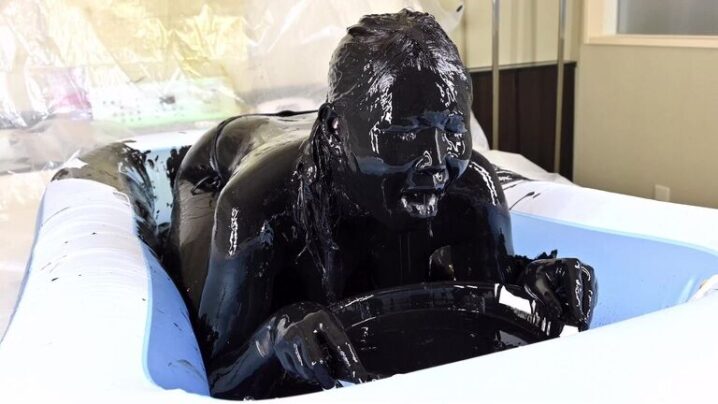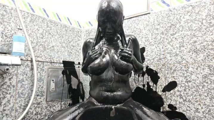 ローラーでペイントを塗られて身体が真っ黒になった女の子ww